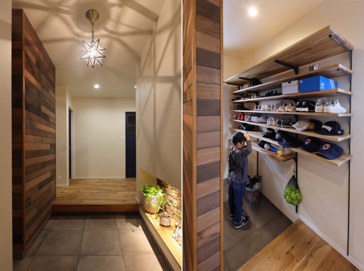 それから「土間玄関」にすれば、作業するスペースや居住スペースの一つとして使うこともできます。古い民家などでは、こうした土間が元々あることも多いのでリノベーションでも採用したいアイデアです。広い土間の片隅にデスクを置いて書斎やワークスペースとして使われる方もいらっしゃいます!