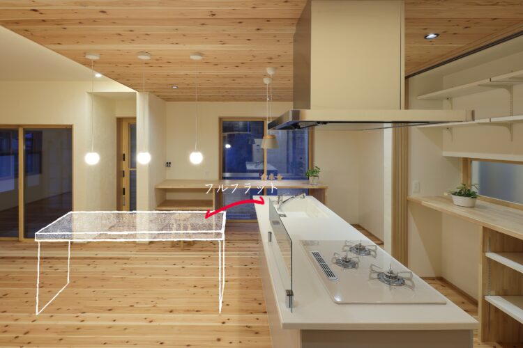 改修に際しては、フルフラットの対面式かアイランドキッチンが人気です。