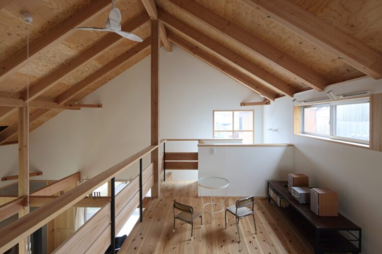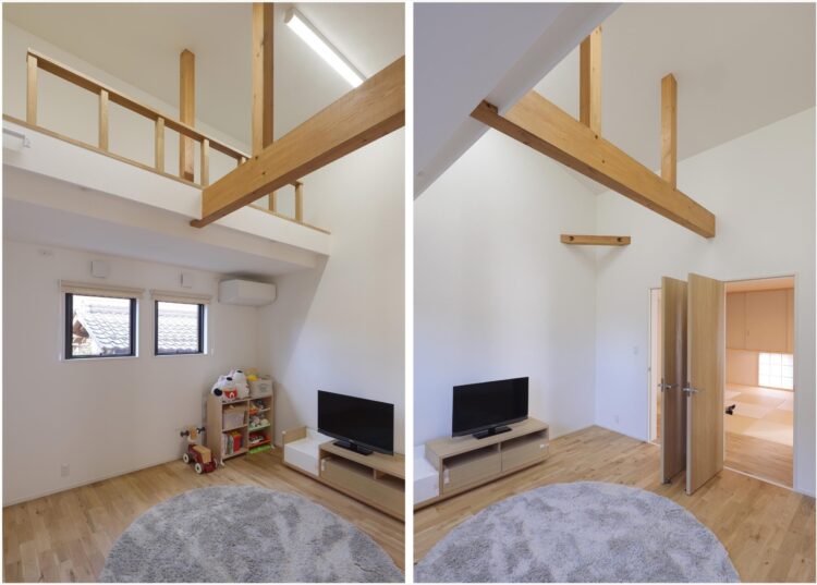 ▲子ども部屋は梁を起点に将来的に間仕切ることが可能。部屋数としては1つに