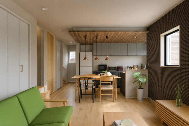 外観はアクセントパネルを取り入れ、落ち着きの中にも遊び心を感じさせるデザインに仕上げました。