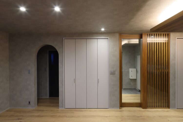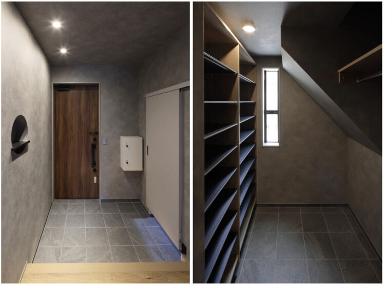 生活感をなくすため、扉の向こうにシューズクロークを設置しています。